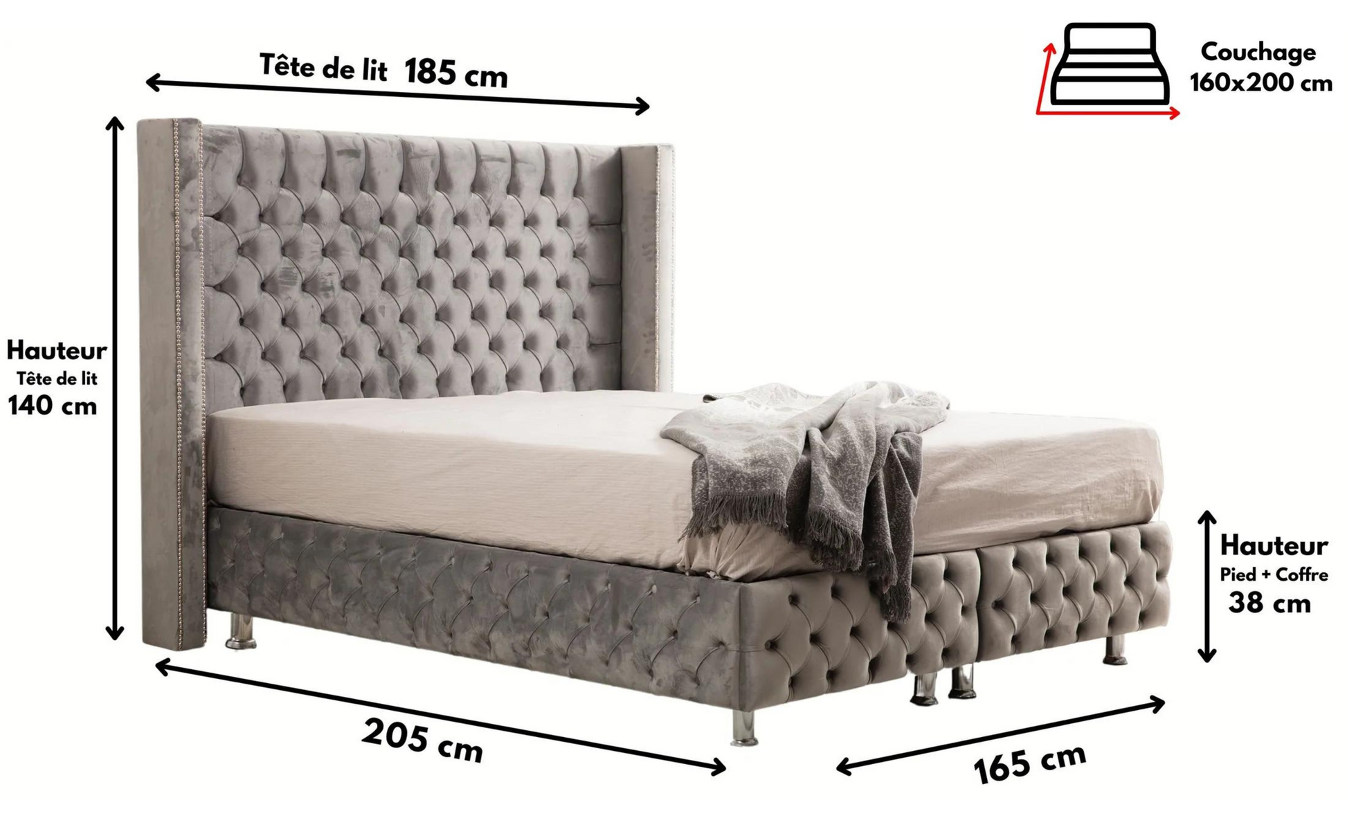 Dimension Couchage Du Lit : 140x190 , 160x200 ou 180x200.